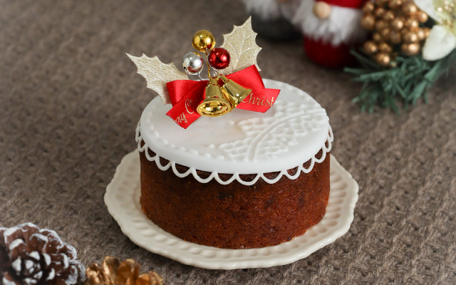 対象:どなたでも★☆☆ 【デモンストレーション中心・簡単な実習付レッスン】 漬け込みフルーツを入れて焼き上げたフルーツケーキにシュガーペーストとアイシングクリームでデコレーションします。