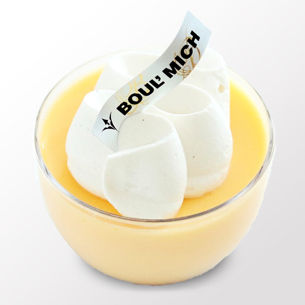ツルンとした食感の素朴な味わいのカスタードプリン。バニラを加えたクレーム・シャンティーイと一緒にお召し上がりください。